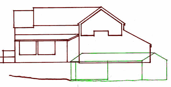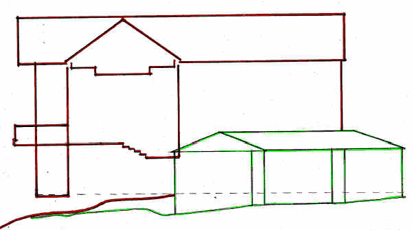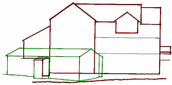 Key: Red = New building. Green = Original bungalow.